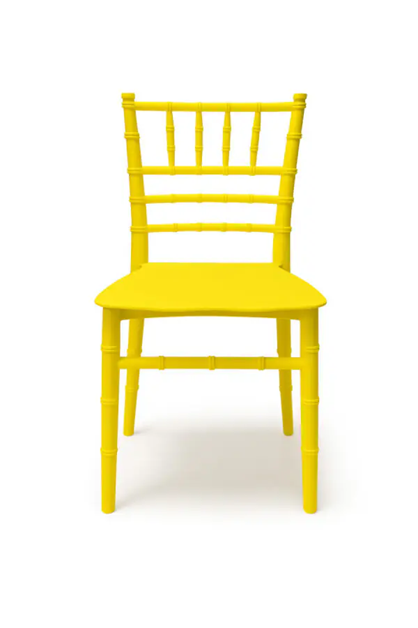 Żółte krzesełko Chiavari to nie tylko funkcjonalny mebel, ale również ozdoba wnętrza i przestrzeni eventowej. Dzięki swojej barwie i klasycznej formie nadaje wyjątkowego charakteru każdej aranżacji.