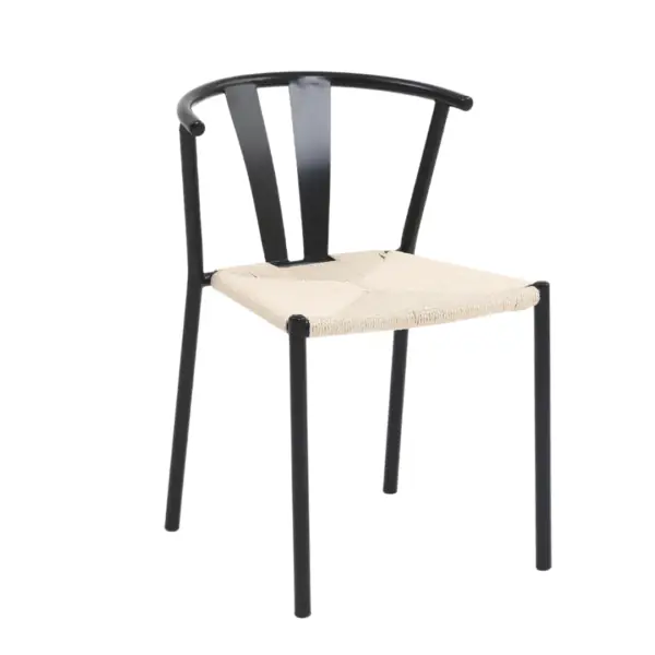 Krzesło bankietowe kawiarniane z jasnym siedziskiem plecionym z sznurków to nie tylko funkcjonalne, ale także stylowe rozwiązanie do aranżacji różnego rodzaju przestrzeni, dodając przyjemny akcent i komfort użytkowania dla klientów czy gości.