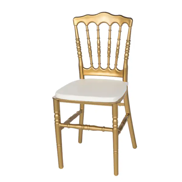 Krzesło Bankietowe/Weselne NAPOLEON PP-złoty to propozycja dla tych, którzy cenią sobie styl i wygodę w jednym. Jego złoty odcień przyciąga uwagę i wprowadza do wnętrz lub przestrzeni plenerowych nutę luksusu, która idealnie podkreśla prestiż każdej uroczystości. To wszechstronne krzesło weselne zostało stworzone z myślą o właścicielach hoteli, sal bankietowych, restauracji oraz firm eventowych, które organizują wydarzenia na najwyższym poziomie.