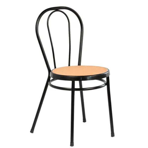 Krzesło Vintage zostało wykonane z metalu w kolorze czarnym. Jego delikatnie wyprofilowane oparcie oraz okrągłe, duże siedzisko zapewniają wysoki komfort użytkowania i pełną wygodę. Dzięki stabilnej konstrukcji, krzesło wytrzymuje obciążenie do 150 kg, co sprawia, że idealnie nadaje się do miejsc użyteczności publicznej. Krzesło zostało także wyposażone w zaślepki antypoślizgowe, które chronią podłogi przed ewentualnym zniszczeniem.