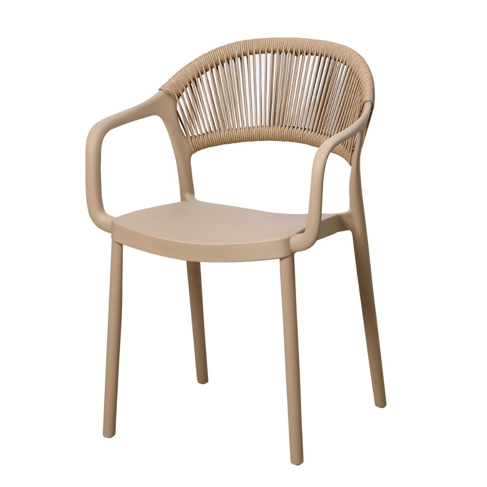 Dzięki jednolitej beżowej kolorystyce krzesło Puro doskonale komponuje się z różnymi materiałami i dodatkami, takimi jak drewno, kamień czy naturalne tekstylia, co sprawia, że może być wykorzystywane w wielu aranżacjach jako krzesło ogrodowe, krzesło tarasowe lub krzesło balkonowe, zapewniając spójność wizualną oraz funkcjonalność w każdej przestrzeni.