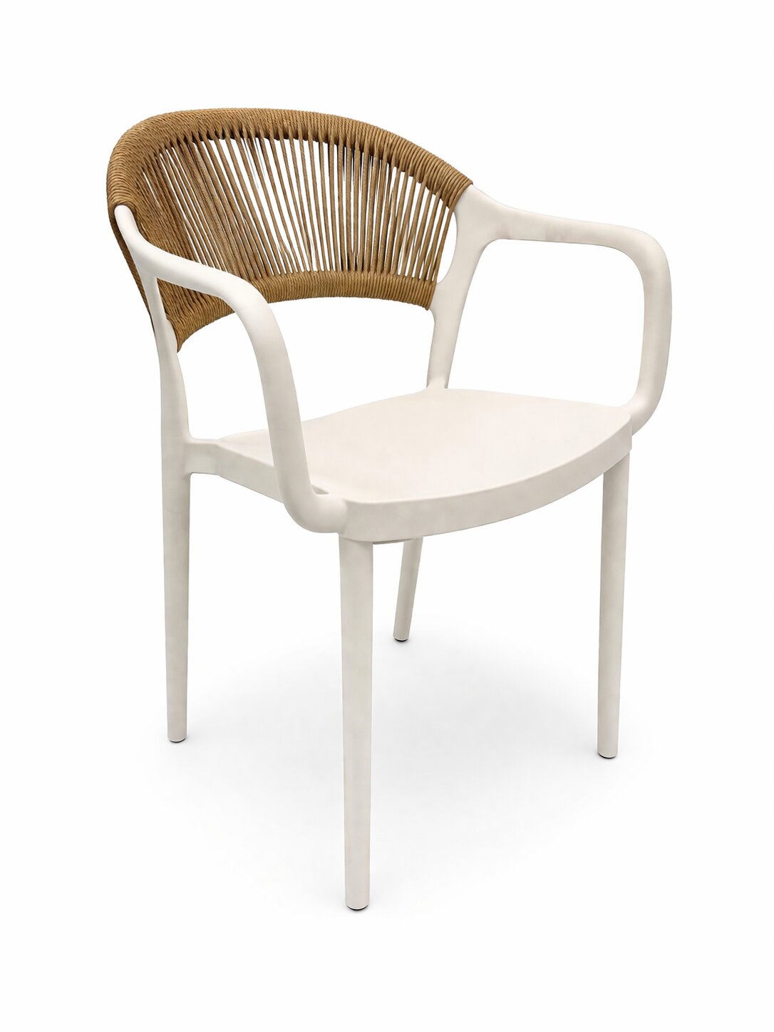 Dzięki jasnej kolorystyce oraz ponadczasowej formie krzesło Puro biało-beżowe z podłokietnikami doskonale komponuje się z różnymi materiałami i stylami, od naturalnego drewna i kamienia, po nowoczesne elementy metalowe i tekstylia, co sprawia, że może być wykorzystywane w wielu aranżacjach, zapewniając spójność wizualną oraz wysoki komfort użytkowania.