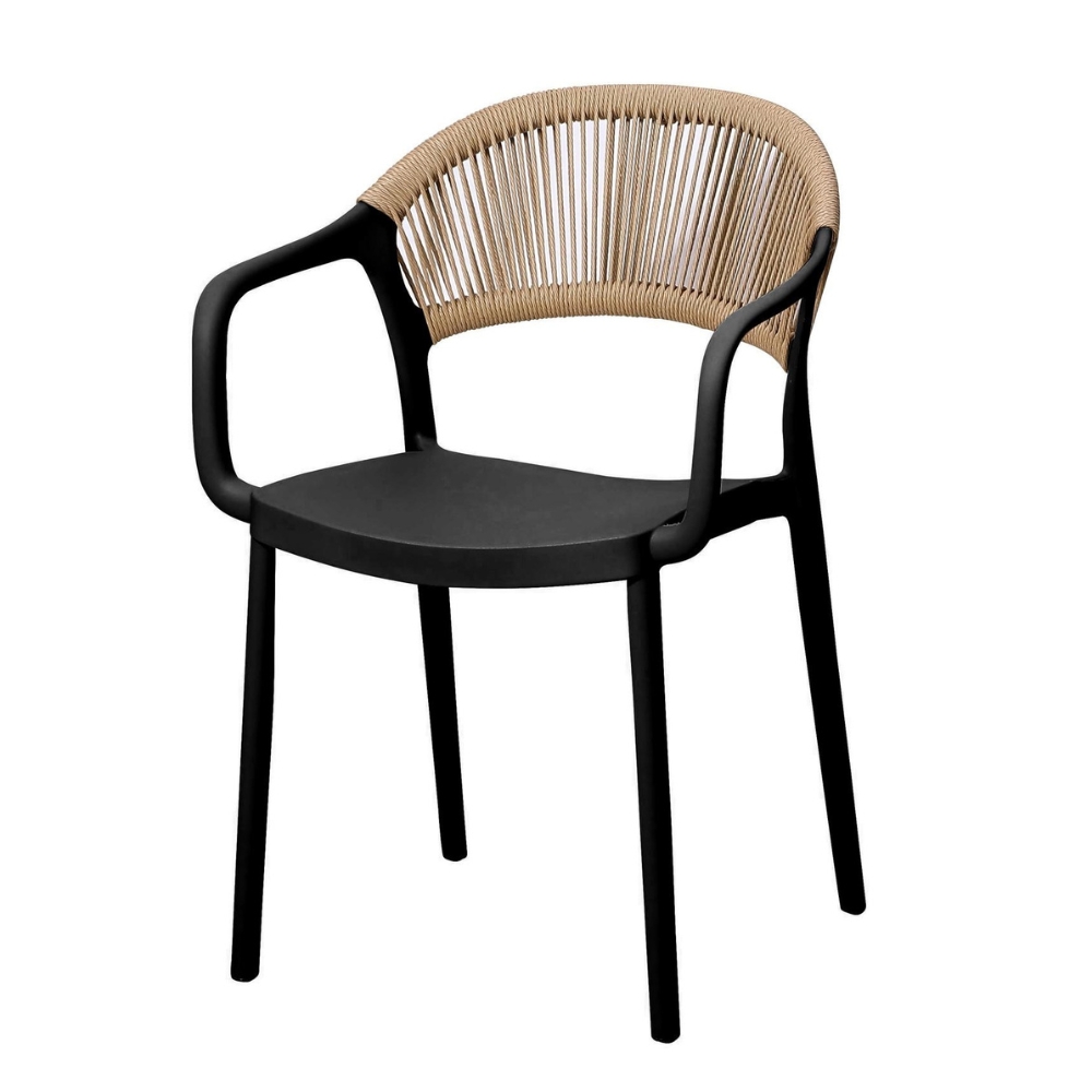 Dzięki połączeniu czerni z naturalnym odcieniem beżu krzesło Puro doskonale komponuje się z różnymi stylami aranżacyjnymi, od nowoczesnych i minimalistycznych, przez boho, aż po bardziej klasyczne przestrzenie, co sprawia, że może być wykorzystywane jako krzesło ogrodowe, krzesło tarasowe lub krzesło balkonowe, zapewniając spójność wizualną i funkcjonalność w każdej przestrzeni.