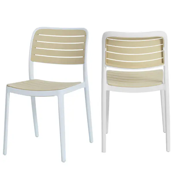 Odporność na Warunki Zewnętrzne: Plastikowa konstrukcja jest odporna na działanie wilgoci, słońca i różnych warunków atmosferycznych, co sprawia, że krzesło jest idealne do użytku na zewnątrz.