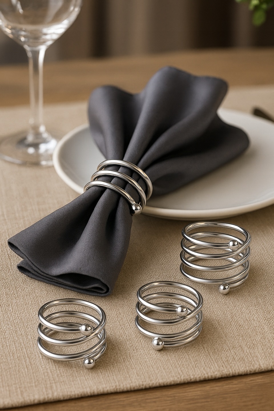 Obręcz na serwetkę w kolorze srebrnym jest doskonałym wyborem, jeśli chcesz dodać elegancji i luksusu do swojego stołu podczas uroczystych okazji, takich jak wesela, bankiety, chrzciny, kolacje galowe czy świąteczne przyjęcia. Srebrny kolor jest często kojarzony z wyrafinowaniem i prestiżem, dlatego obręcz srebrna doskonale komponuje się z białymi lub kremowymi serwetkami, tworząc kontrastowy, stylowy efekt.