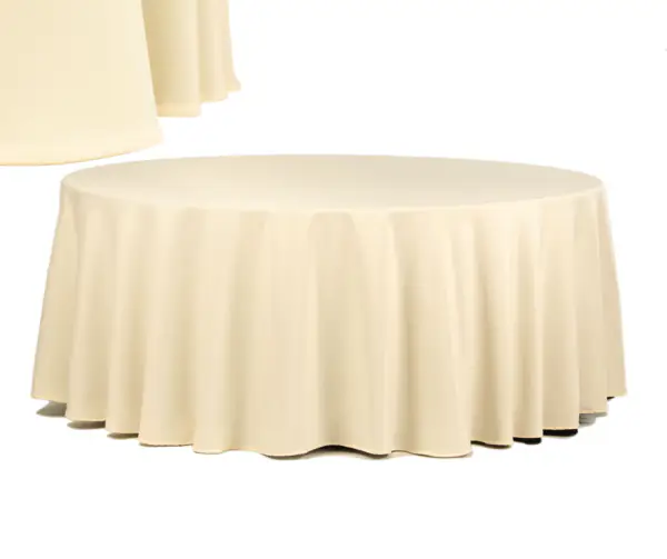 Obrus w kolorze beżowym o średnicy 320 cm kojarzony jest z ciepłem i przytulnością, co może stworzyć bardzo serdeczną atmosferę podczas spotkań formalnych, jak i rodzinnych czy wszelakich przyjęć. Beżowy kolor na stołach dodaje subtelnej elegancji, zachowując jednocześnie neutralność. Może stanowić doskonałe tło dla innych ozdób czy dodatków stołu, podkreślając ich urodę bez zbędnej dominacji. Obrus ten najczęściej spotkać możemy na przyjęciach weselnych, chrzcinach czy balach świetnie pasują zarówno do tradycyjnych, jak i nowoczesnych wnętrz, dodając im subtelnego uroku. Beżowy odcień jest wyrazem harmonii i klasyki, sprawiając, że każde przyjęcie staje się wyjątkowe.