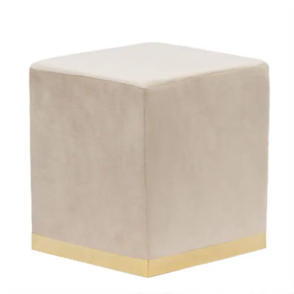 Pufa tapicerowana welurowa w kolorze beżowym o wymiarach 40×40 cm i wysokości 43 cm to elegancki i funkcjonalny dodatek do każdego wnętrza. Wyposażona w stylową złoto-lustrzaną obramówkę, ta pufa łączy w sobie luksusowy design z praktycznością, oferując zarówno komfort, jak i estetykę na najwyższym poziomie.