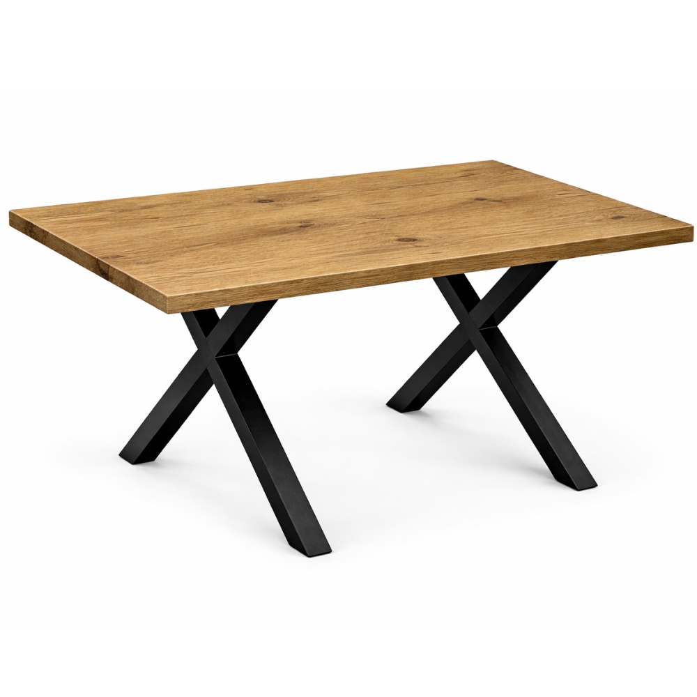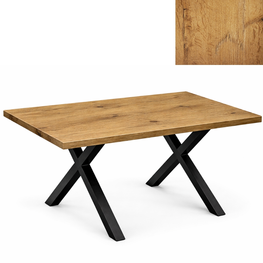 Stół loft 120×80 cm – blat dąb lancelot + nogi metalowe X, nowoczesny stół do jadalni i biura