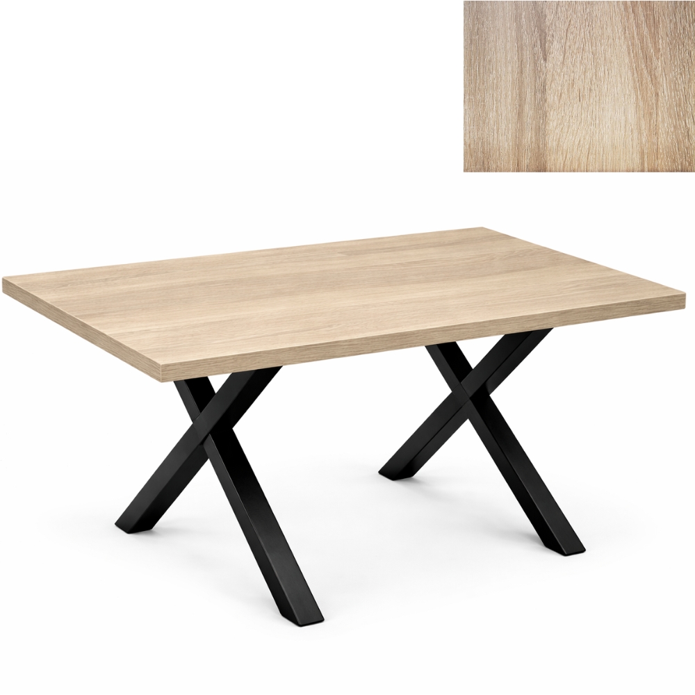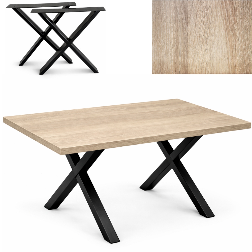 Stół loft 120×80 cm – blat dąb sonoma + nogi metalowe X, nowoczesny stół do jadalni i biura