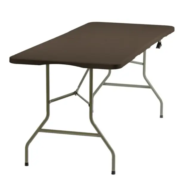 Stół cateringowy o wymiarach 180x74cm to wyjątkowe rozwiązanie dla wielu różnych wydarzeń i miejsc. Jego brunatny blat nadaje mu elegancji i uniwersalności, podczas gdy stelaż w kolorze czarnym zapewnia stabilność i solidność.