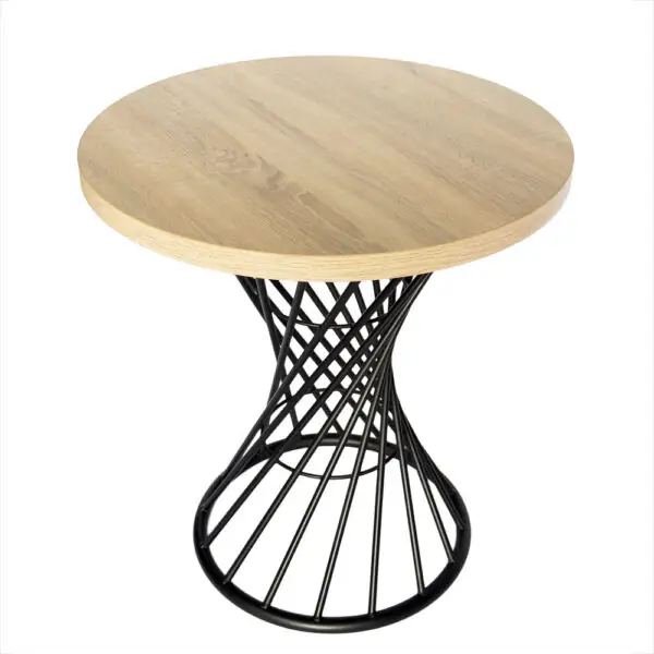 Stolik o średnicy 80 cm sprawdzi się w wielu aranżacjach i pomieszczeniach. Może pełnić funkcję stolika kawowego w salonie, stolika pomocniczego w jadalni lub kuchni, a także designerskiego mebla do kawiarni, restauracji czy hoteli. Dzięki ponadczasowemu połączeniu koloru drewna i czarnej stali stolik łatwo dopasować zarówno do wnętrz w stylu loftowym, industrialnym, jak i nowoczesnym czy skandynawskim.
