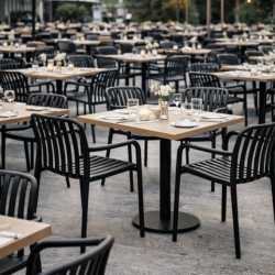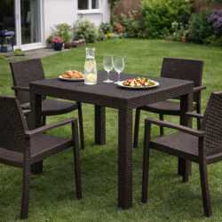 Stolik kawiarniany zewnętrzny ogrodowy imitacja drewna 70×70 – kolor jasny