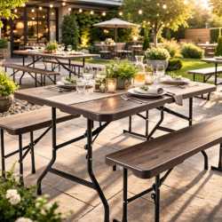Stół ogrodowy cateringowy prostokątny 200x90cm czarny walizka