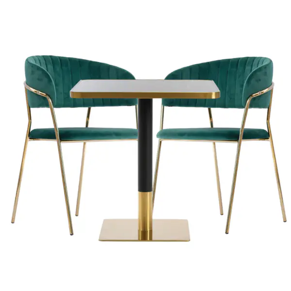 Zestaw kawiarniany złoty ARP608 czarny stolik + 2 krzesła Glamour zielone