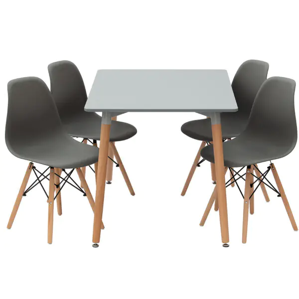 Pełny opis produktu Zestaw Stół 120x80cm + 4 Krzesła Nowoczesny Skandynawski Styl DSW szary zestaw mebli nowoczesnych to idealne rozwiązanie wyposażenia pomieszczeń domowych takich jak salon czy kuchnia.  Skandynawski zestaw nowoczesny to idealny wybór dla osób, które cenią prostotę i funkcjonalność. Doskonale sprawdzi się w wyposażeniu salonu czy kuchni, na salach bankietowych, w lokalach gastronomicznych czy do użytku domowego.